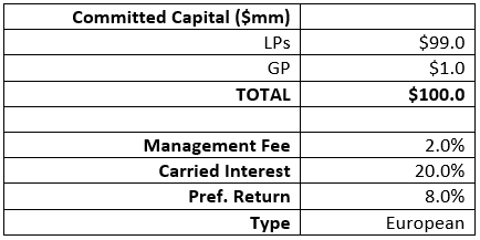 Using an OPM, how do we estimate a reasonable stock price and strike price? To start, the capital commitment may be a good proxy for the stock price, so we can fill in $100 million. However, that also operates under the assumption that all capital is deployed, which likely won’t be true until Year 5 of the fund.